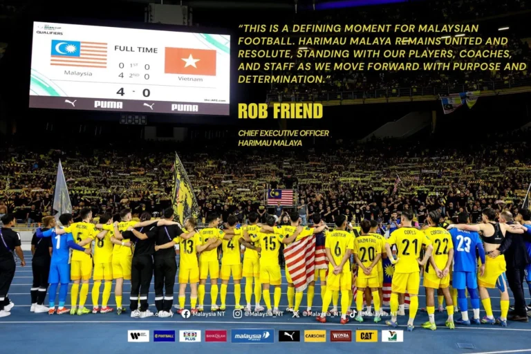 “Kami berdiri teguh bersama pemain dan jurulatih. Fokus utama kami adalah menyediakan pasukan yang mantap untuk menghadapi Laos dalam aksi kelayakan akan datang. Harimau Malaya akan terus mengekalkan disiplin dan profesionalisme di padang, demi maruah negara,” jelas Friend menerusi kenyataan di laman Facebook rasmi Malaysia NT.