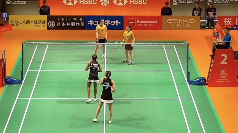 Beregu wanita kebanggaan Malaysia, Pearly Tan dan M. Thinaah, berjaya mara ke pusingan kedua Kejohanan Kumamoto Masters Jepun 2025 selepas menewaskan pasangan Jepun, Mikoto Aiso dan Momoka Niimi, dalam perlawanan penuh mendebarkan yang berakhir dengan keputusan 18-21, 21-9, 21-17.